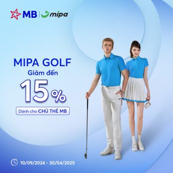 Từ 10/09/2024 đến ngày 30/04/2025, Ngân hàng TMCP Quân Đội (MB) hợp tác cùng Đối tác MIPA GOLF mang đến chương trình ưu đãi “Giảm đến 15% dành cho chủ thẻ MB”.