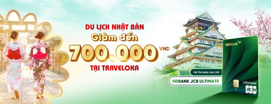 Chương trình ưu đãi giảm đến 700K tại Traveloka khi du lịch Nhật Bản cùng thẻ HDBank JCB Ultimate được áp dụng từ ngày 01/08/2023 đến ngày 31/10/2024.