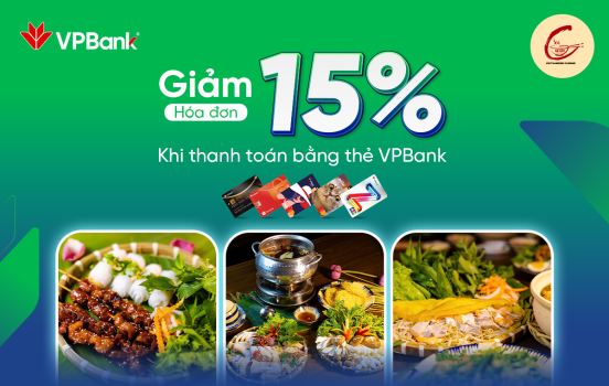Giảm 15% tổng hóa đơn khi thanh toán bằng thẻ VPBank