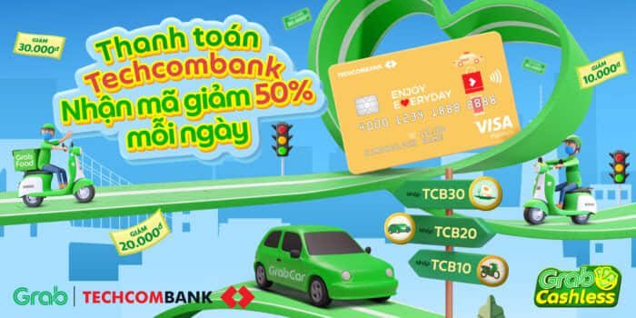 - Chủ thẻ tín dụng Everyday Techcombank (BIN 422076 và 403280) cho dịch vụ GrabCar/GrabBike/GrabFood trên ứng dụng Grab