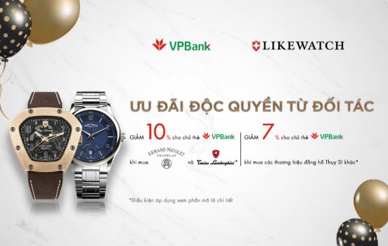 – Ưu đãi 2: Giảm 7% trên tổng hóa đơn khi mua các sản phẩm đồng hồ còn lại tại Likewatch (không bao gồm thương hiệu Armand Nicolet và Tonino Lamborghini)