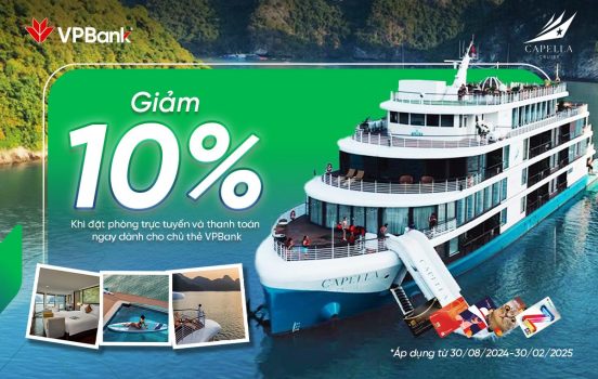 Chương trình Ưu đãi 10% trải nghiệm nghỉ dưỡng trên du thuyền tại Capella Cruise dành cho chủ thẻ VPBank áp dụng từ ngày 30/08/2024 đến hết ngày 30/02/2025