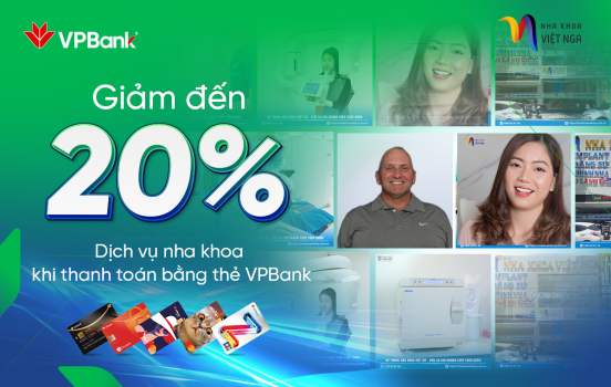 Chương trình Ưu đãi chi tiêu giảm đến 20% cho chủ thẻ VPBank tại Nha Khoa Việt Nga được áp dụng từ ngày 01/10/2024 đến hết ngày 30/09/2025