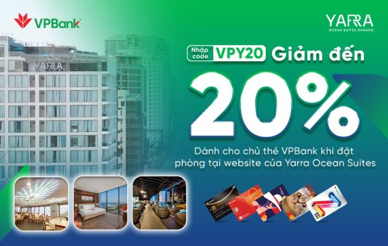 Giảm đến 20% dành cho chủ thẻ VPBank khi đặt phòng tại website của Yarra Ocean Suites: https://www.yarraoceansuitesdanang.com/ hoặc https://book directonline.com/properties/YarraOceanSuitesDanangDirect