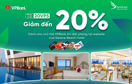 Giảm đến 20% dành cho chủ thẻ VPBank khi đặt phòng tại website của Serene Beach Hotel: https://serenebeachhoteldanang.com/ hoặc https://book directonline.com/properties/SereneBeachHotelDaNang